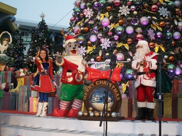 坐海洋列车下山,正好赶上圣诞树的亮灯仪式,圣诞老人又来了,我和老大都觉得圣诞老人好累啊....