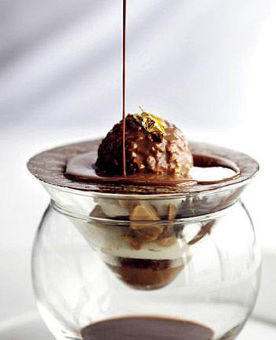 厨房也是属于非常大胆的开放式设计,对于一家餐厅来说,必须有一定的自信才能够将厨房暴露于客人的面前。作为星级名店的Caprice,不管是装潢和藏酒肯定都是一等一级的,作为一家高级法国餐厅,其菜品却绝不是想象中那种暮气沉沉,四处都是酱汁、不健康的肥腻和足以令你嗓子干涸的甜。不见了法餐昔日的辉煌和霸气,取而代之的是清新简约的装盘和年轻化的口味,甜品拿破仑酥,清淡的奶油混合着新鲜时令的水果,与酥脆松软的酥饼配合,难得的是在客人面前当场制做,美味之余还能吸引眼球,充分契合了时下一切流行的要求。