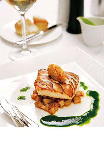 招牌菜:三式鲜带子拼红菜头、特级鱼子酱、香煎法国鲈鱼伴芝士焗薯