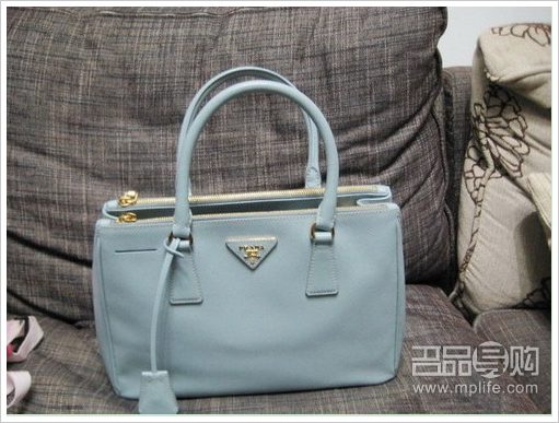 谍4同款的PRADA 本来是想买那个玉粉色的,可是小号没货,就选了这个湖蓝色,现在还一直在纠结要不要换成别的颜色,虽然这个色适合春夏用,可是不太好搭衣服呀。平时都是穿粉色系的衣服多。