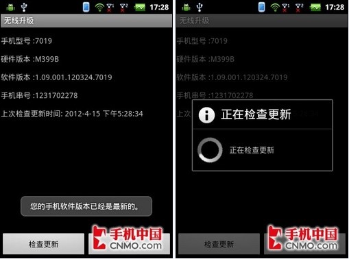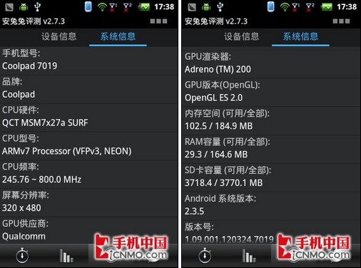 此外,酷派7019自带了无线升级检测工具,使得升级更新非常的简便。目前,酷派7019运行的Android 2.3系统已经是目前最新的系统版本。