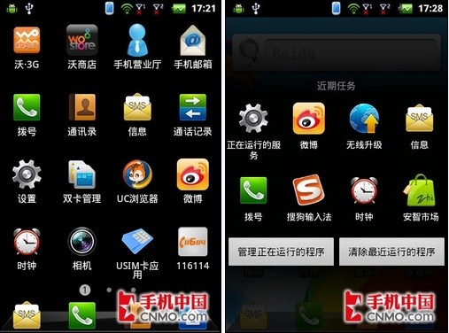 酷派对于Android系统的定制其中一项就是加入了第三方的应用程序。由于酷派7019由中国联通定制发售,所以像沃商店、沃门户和手机营业厅均已内置进手机中。