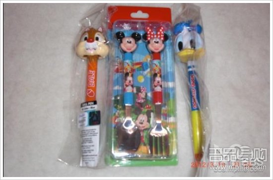 松鼠圆珠笔65港币;米奇米妮餐具60港币;唐老鸭圆珠笔65港币,购于DISNEY乐园公仔店