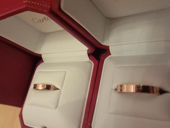 CARTIER对戒 LOVE系列 选的最基本款 价钱也最便宜哈哈 广东道的专卖店买的 专柜小姐态度SOSO 大约13000港币 以后会考虑买个宽版的凹造型