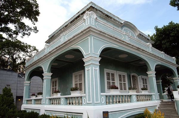 剩下的二景都在澳门离岛上。我先驱车来到仔岛,这里古称龙头环或龙环,以前是荒岛,这里古称龙头环或龙环,以前是荒岛,经过澳门人辛勤的劳动,如今已高楼林立,跑马场人头攒动,东部填海兴修的国际机场也投入使用了。我来到后背湾一带,这里有市政花园和星星花园,海边马路旁有五幢本世纪初的葡萄牙风格建筑,格调一致,排成一列,掩映在绿树丛中,与堤岸边的红树林和碎石路上典雅的路灯相得益彰,充满诗情画意、古韵愁绪,从任何角度看都不失为一幅天然的美景。这就是澳门八景之七的“龙环葡韵”。