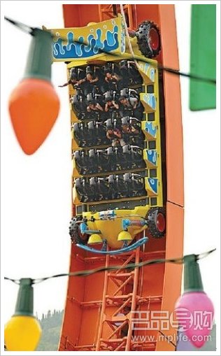 走进园区就发现和其他园区完全不一样哦~~我们就像小玩具一样,和大玩具般的游乐设施中游走着。光是看着这些大玩具们,胆小的我就已经两腿发软了,男友好像跃跃欲试般~我决定放男友独自去玩“冲天遥控车”。据说冲天遥控车是反斗奇兵大本营最为惊险刺激的游乐设施,在27米高的轨道上行驶,天哪这么高~而且还是个U形轨道哦~~喜欢刺激的看官肯定是乐不可支!看得我也心痒痒的。