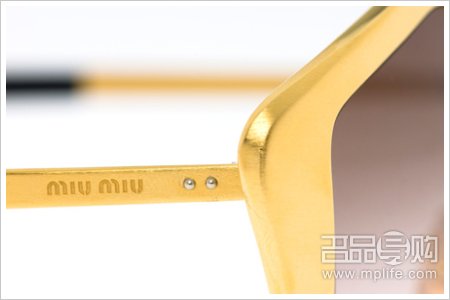 Miu Miu Culte太阳眼镜的制造工艺流程极其复杂,它的几何轮廓是采用一整块钢材雕琢而成,用精细的金色纹络来装点眼镜边框,金色的拉丝金属细节与镜片的色调相搭配,更突出其个性,并表达一种全新的态度。可选颜色包括珍珠母色、烟褐色和深褐色。