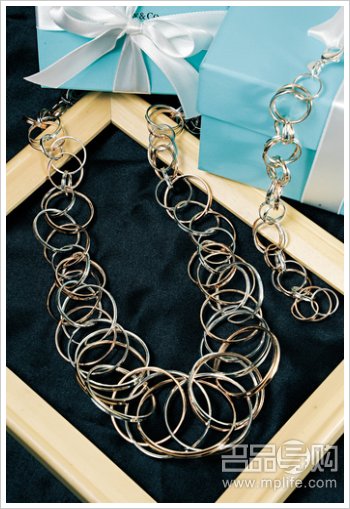 新设计的1837TMRUBEDOTM金属及纯银锁环圈形项链,环内刻有品牌创办人签名字样(左/$74,000);1837TMRUBEDOTM金属及纯银锁环圈形手链(右/$16,300)。