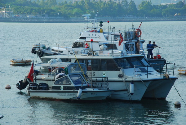 左转之后的风景变得好了,因为单车径是沿着海边修的,会经过科学园。海边也有不错的海边长廊,海边长廊有很多附近的居民在休息和散步。这一段也有休息点,而且休息点配置似乎更好。在之后会有一个小码头,一些水警的快艇在这停泊。很多骑单车的人都在这休息拍照发呆。