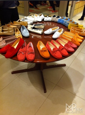 TOD'S的展柜,永远让人看了每双都想要,最后入得最当中的桔色一双