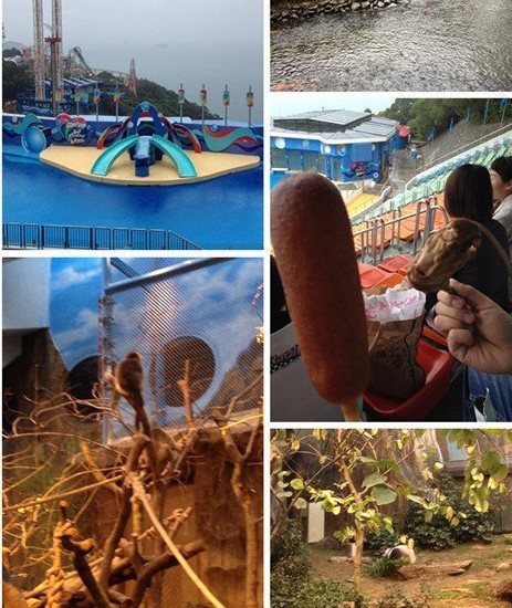 DAY3 这几天香港的天气阴沉沉的,不过室外也不冷,短袖ok。但商场里面我觉得还是需要加件长袖,今天预计是去海洋公园玩一天,早上地铁转629城巴,路程还是很快的,到了公园门口等了近10分钟才开园,期间碰到一个很好的印尼华侨,跟们说怎么怎么玩,香港人很是热情吖,不过下午下暴雨了,过山车没玩到,等了半个多小时的海洋伴我心也取消了,哎大伙嘘声一片啊,最后太平山也放弃了,晚上只有兜兜星光大道,维多利亚港了