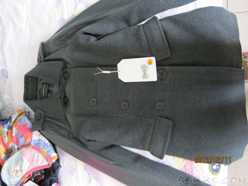 继续播2%的战利品,一件中长款大衣,袖子上的皮料子,可是真皮牙,呵呵,穿上很有型!价格标签上的价格四折