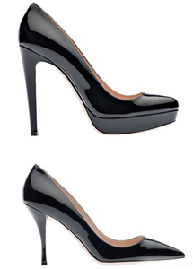 尖头版高跟鞋则因其漆皮或压纹真皮细长中跟而别具特色。有电光色调的翡翠绿、孔雀蓝和兰花粉的颜色供选择