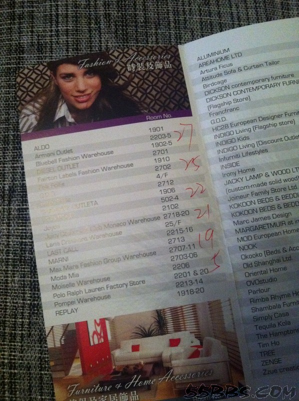 (海怡工贸)建议从PRADA出来,还是打辆车,可以和别人合着打一辆,21HKD,天气太闷热了,走着太难受,我是走着回到汽车站的,用了20分钟,出一身汗。建议早点去,要不等电梯都排队,大堂有楼层目录,前台很热情,会把卖衣服的楼层都给你标出来,其他层基本都是家具,我看了,太贵!其实就那几层衣服可转,别抱太大希望!如果你平时就关注这些牌子,一定会大有收获,基本都在3到5折,我只收获了一条给lg的ARMANI腰带,五折,合人民币650。