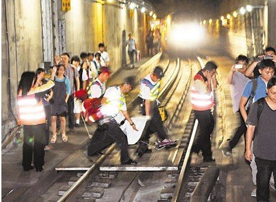 图:肇事列车上被困的900多名乘客,须沿路轨步行约百米返回月台。来源 香港《文汇报》