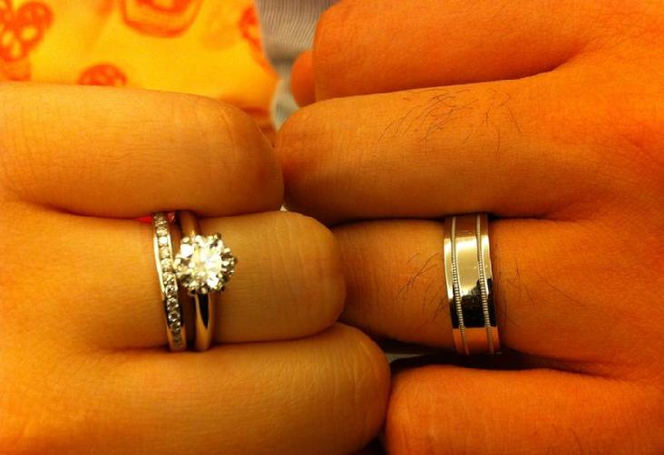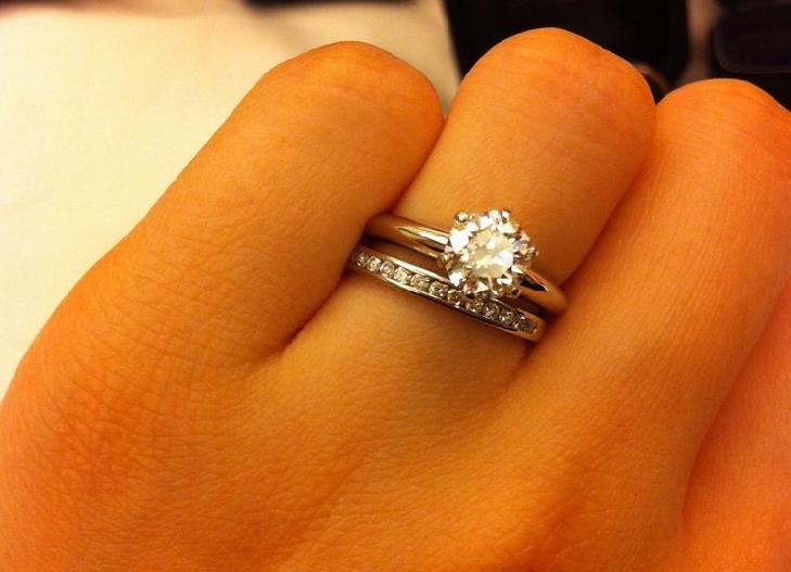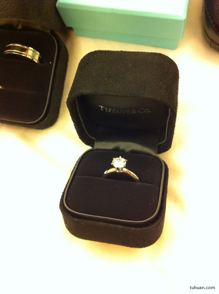 LZ的是铂金镶半圈钻,男友的是纯铂金款,重爆了~( T家钻戒指环大小需要拿去改,一般需要1~2天。)另外,它家的钻不用GIA证书,是它们自己家的证书,不过4C还是有的,颜色和纯净度在吊牌上可以看到,切工就需要查一下才能知道。个人感觉,净度不低于VS2就好了,色泽跟切工都是比较重要的,差个一档两档的肉眼都能辨识出来。