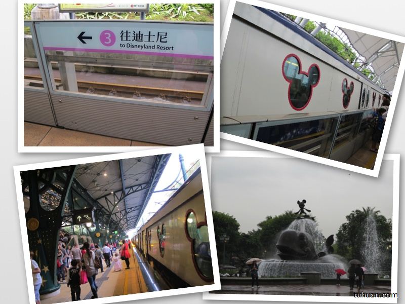 坐荃湾线到荔景转东涌到哪儿转迪斯尼专线来着,车厢里都有标,港铁真是很有爱!