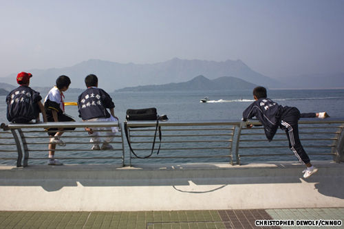 喜爱原因:自海滨看过去的景色异常别致。 大货船与渔船缓缓行经青山湾,望过去还可看到水平线上的机场景色。
