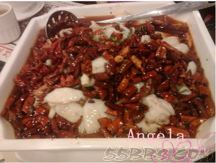 上来了碗小菜--泡萝卜,看似无辣胶...偶忍不住马上夹了片放嘴里...顿时辣的 偶猛灌了一杯水..太辣了,不愧是川菜啊...安琪宝贝看到我那样,也忍不住夹了块吃,边吃边说:奶奶,一点都不 辣,妈咪好无用哦....