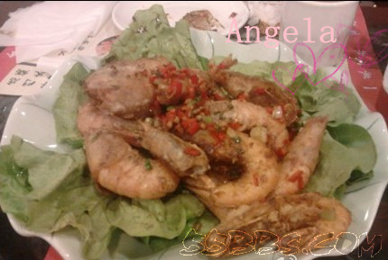第四道菜,麻辣虾(偶忘记真实名字了,反正不辣)...安琪宝贝跟老公的最爱... 好大一只...98米...