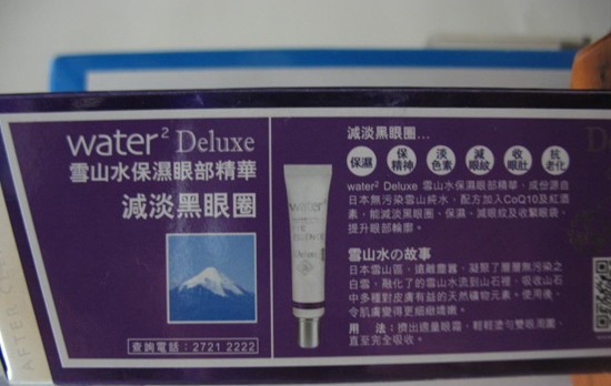 WATER2眼霜88/支(原价220哟),两支以上7.5折,开始以为是霜状的,所以只买了3支,结果回来一用,是水状的,感觉挺好,是我最喜欢的类型,个人觉得用水状的不会长油脂粒的。折算下来才55元人民币,太后悔没买多两支了。