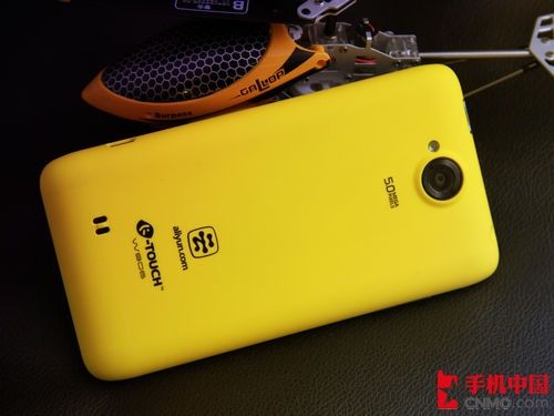 天语“大黄蜂”W806正面搭载了一块4.3英寸显示屏,分辨率达到了800×480像素,并且采用了IPS显示面板,实际显示效果十分出色。另外外观上,后面的这款黄色背壳也十分显眼,而且磨砂材质的采用也让它有着很好的握持手感。机身背部内置了一枚500万像素摄像头,并配以LED闪光灯,成像效果令人满意。