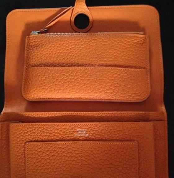 爱马仕 Dogon 橙色钱包,购于海港城爱马仕,15000港币。排了2小时队啊。。。为了低调特地买了个圆扣的,没买H扣的。