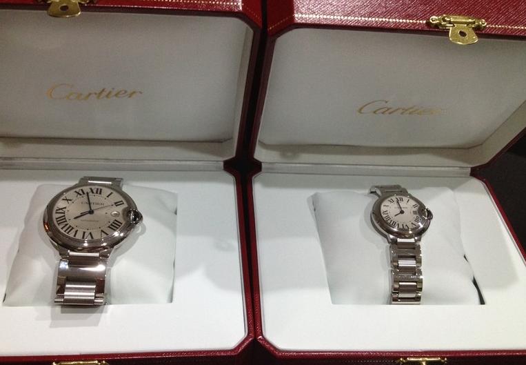 买完钱包我们直奔DFS买表。本来是想买欧米伽碟飞系列白表盘的,但是到了店里觉得太老气,我和老公想要时尚点的。一狠心想买卡地亚算了,因为我们的对戒也是卡地亚的,就收了一对蓝气球。。。74500港币。