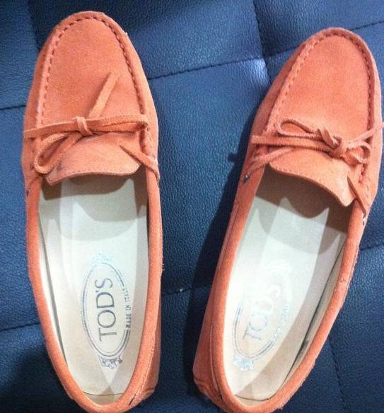 先去tod's 买了3双鞋。当然少不了豆豆鞋辣。。。我得脚小,35码的只有橙色,没得选。。。我看也不难看,就收了。还给妈咪买了一双浅棕色的,37码,很好看,已经送出去了,木有照片呢。。。我还在tod's 买了一双高跟鞋,穿起来很舒服。