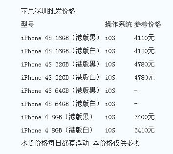 与三星、HTC的大幅降价相比,苹果手机的报价就要显得平淡很多。当然,不是说它没有降价,只不过降幅不明显罢了。其实这也是有原因的,几个热销版本的苹果手机价格都受制于官网,即使再降也不会比官网便宜太多。从下面的报价单来看,港版iPhone 4S 64GB依旧缺货,而16GB和32GB版本都出现了小幅下跌,相比而言,港版iPhone 4 8GB降幅更为明显。总体来看,本月初苹果手机平均降幅为80元,相对来说比较稳定。