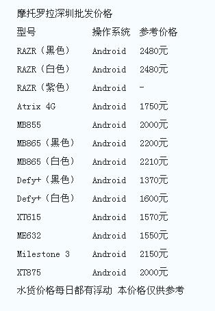 摩托罗拉主流机型价格:均降210元