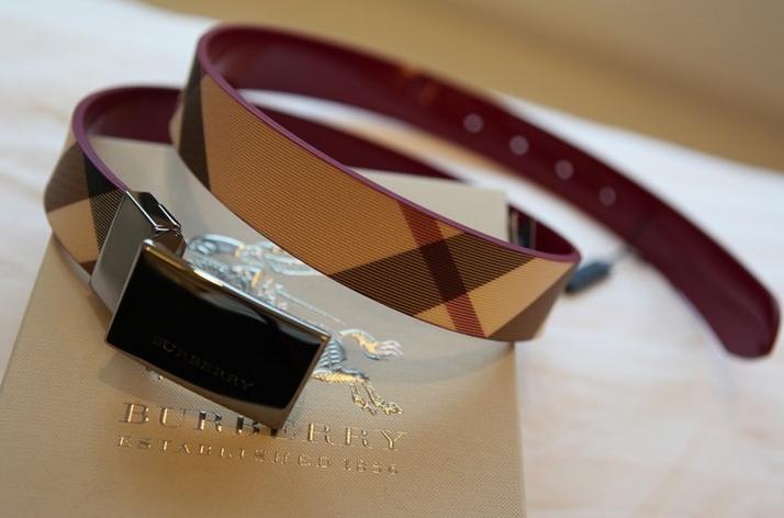 BURBERRY皮带,两面用的,一面是经典的格子,一面是漆皮枚红色。和大衣一起买的,原价2600HKD,同打75折。