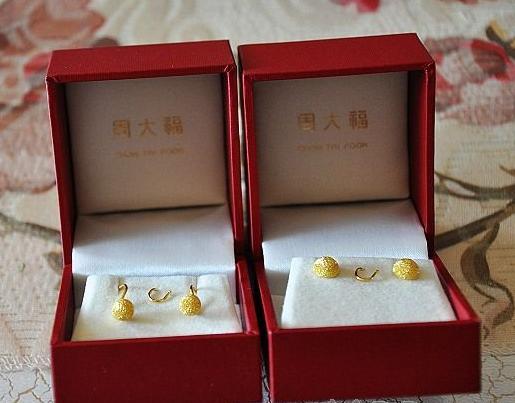 周大福的磨砂球球耳坠和磨砂球球耳钉