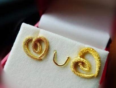 9999磨砂爱心耳钉,价格:1900hkd。