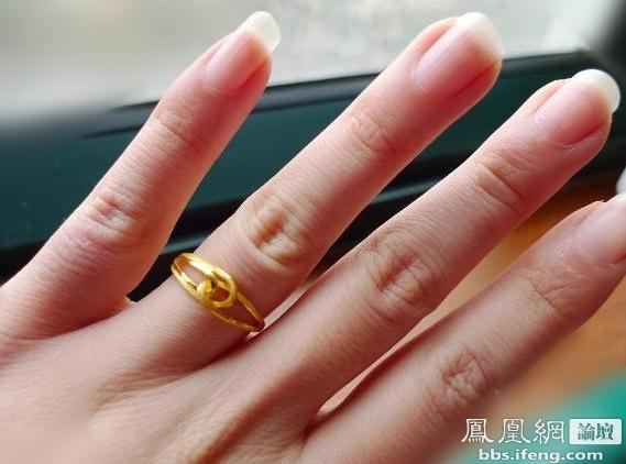 考虑到貌似还没有买金戒指,俗么是很俗,我知道。。。但是既然都买勒就凑一套嘛(总能找到败家理由的我啊。。) 看勒周生生,实在无爱啊,还是在周大福入的,价格是1410hkd,曾心便宜!大概是戒指上洞洞很多的关系?
