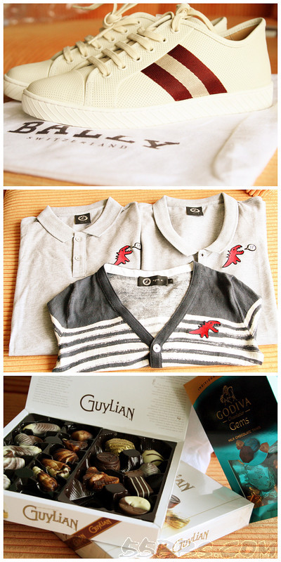 一共买了5件,一件白色的男款送给弟弟了,另外两件灰色的,一男一女,还有两件条纹针织衫,一男一女,一共是3500+,9.5折,还送了一个日本小恐龙积木玩具。