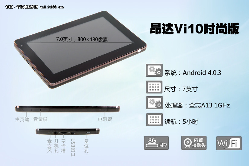 昂达Vi10时尚版采用全志A13 1GHz处理器和512MB内存的赢家配置,搭载安卓4.0.3系统。