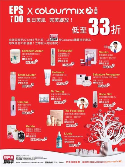 【活动内容】由即日起至2012年5月24日,以EPS于Colourmix购买指定产品,即享低至33折优惠!现在就立即投入亮肌喜悦!无惧夏日炽热太阳!
