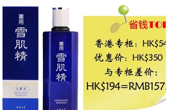 KOSE药用雪肌精保湿水含中日植物精华(薏仁萃取液、当归萃取液、白蘝萃取液)调配成的药用美肌化妆水。充分赋予肌肤水份,修復粗糙的肌理,消除暗哑,缔造富透明感的肌肤。感触水嫩清爽,有助舒缓心情。每天于上妆前使用效果更佳。360ml香港专柜HK$544,优惠价HK$350。