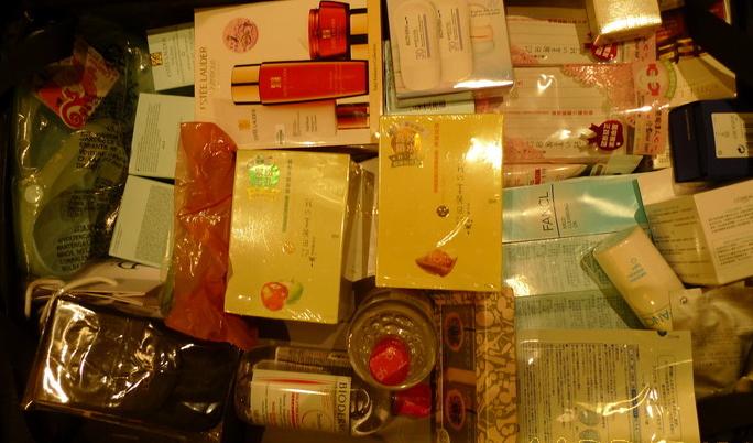 莎莎果然是随处可见哈。。。而且也正如JM们说的,果真是要抵住那些售货员的推销啊。。。。。扫了些香水小样送人,BB霜,还扫到一盒红石榴套。。。。499港币,,大喜啊。。结账时想用55上的卡打折,售货员居然说不能用。。。我擦,算了,挑得辛苦。。。不想麻烦了。。。。但再以后就不想踏入这种店了。。。