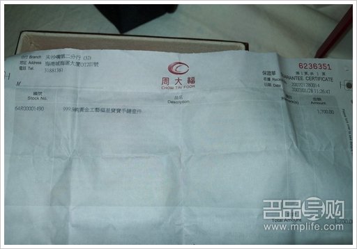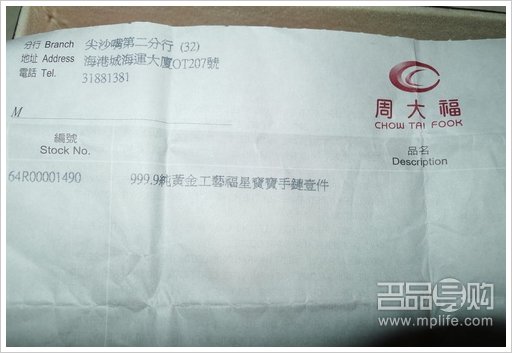 在香港买的周大福产品和在北京买的还是不一样的,因为是港货,所以金饰背面的刻字都是英文的,手链是当时只有香港有货的一口价产品 ,在北京及内地大陆地区是没有货的。