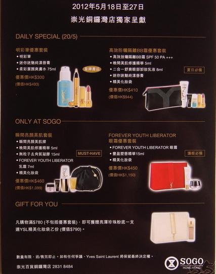 我在深圳,占据地利优势,去香港跟去趟深圳的东门差不多的时间,嘿嘿~5月18号是店庆第一天,17号收到天气预报,深圳香港大雨,并伴有雷暴,顿时泪奔呀~~不过下刀子偶也要去呀,SOGO偶来啦~~