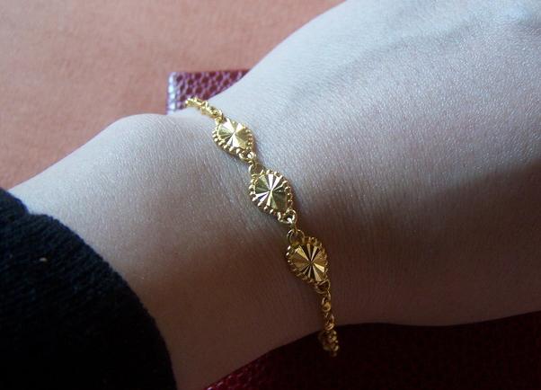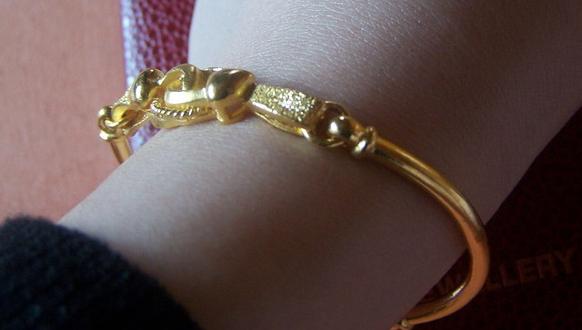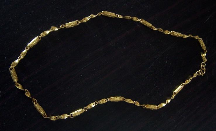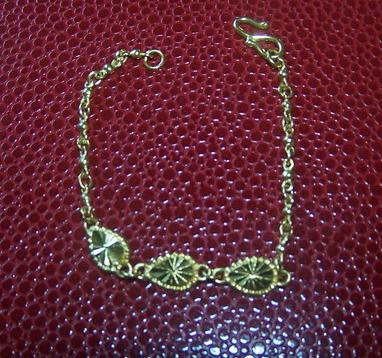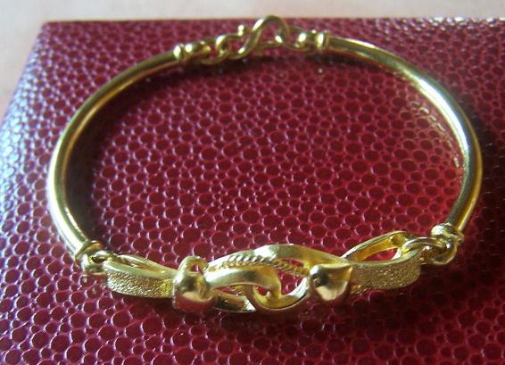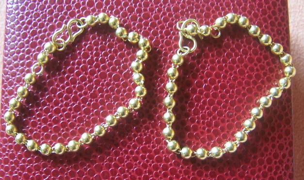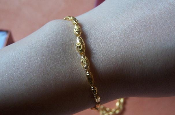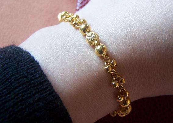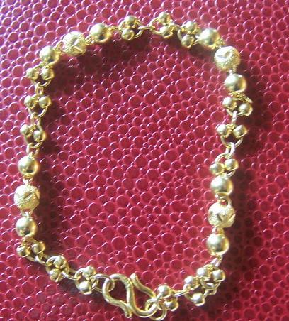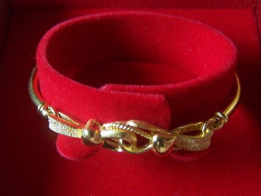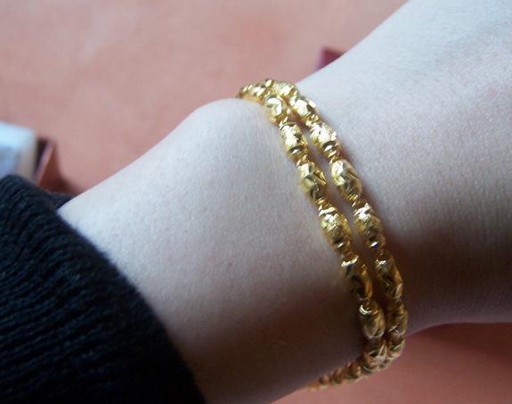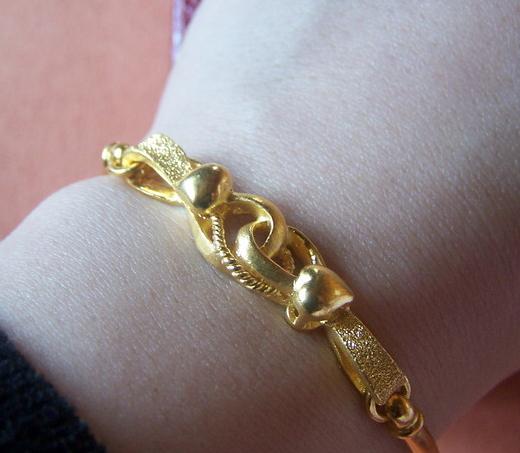 这个是自己在金铺里找人打制的,也是千足金,但跟商场的金子比较起来,还是商场的颜色更亮些,应该是工艺的问题~~