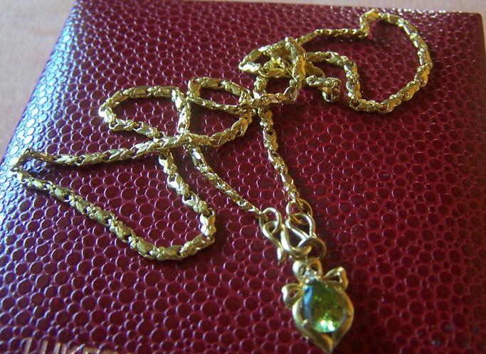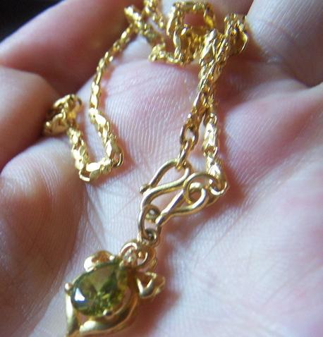 很喜欢这个坠子上镶嵌的水晶,绿幽幽的光~~