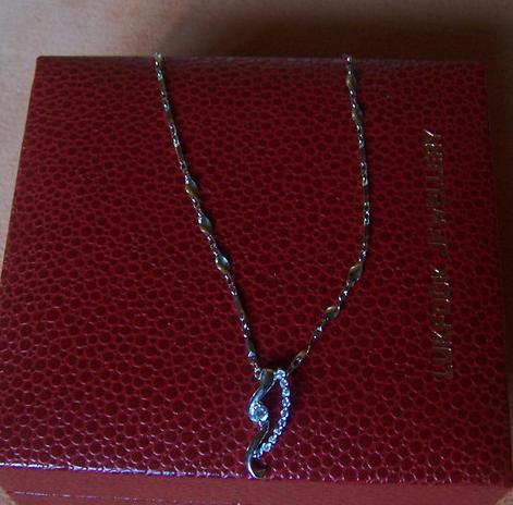 白金的链子,配的坠子是白水晶~图片拍毁了~~