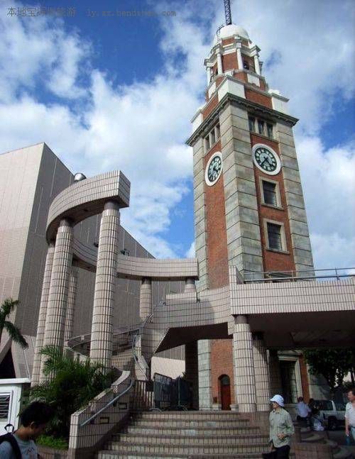 尖沙咀钟楼建于1916年,原为旧九广铁路火车总站建筑的一部分。楼高45米,方形柱楼上面为穹顶圆形塔楼,巍峨而秀丽是九龙的象征。钟楼前有一座两层的海岸长廓,是观赏维多利亚海港和港内夜景的极佳位置。
