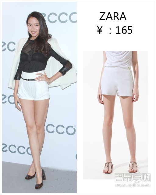 一条高腰的白色短裤让张梓琳的美腿显得更为修长,白色套装内搭配的透明黑色衬衫极度诱惑哦!