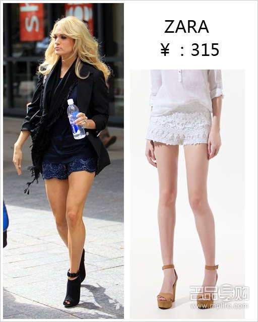 Carrie Underwood的藏青色蕾丝短裤让整体中性化的装扮变得性感优雅,让人不能忽视她的腿部。