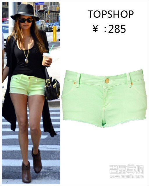 妮娜-杜波夫的绿色短裤好清爽,搭配宽沿帽,再戴上一副大墨镜,明星女孩也要潮一把。