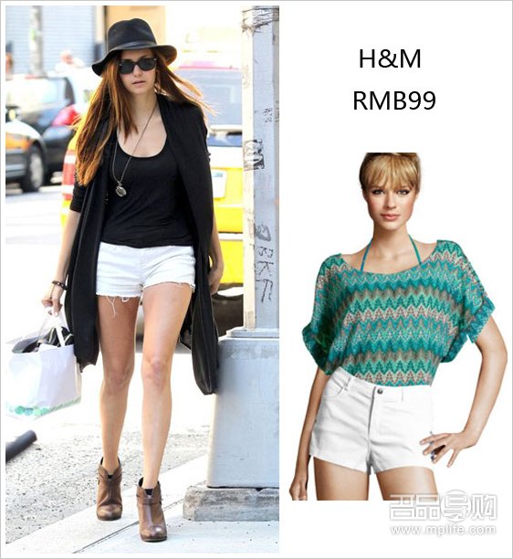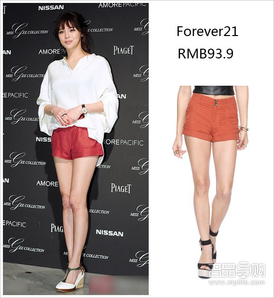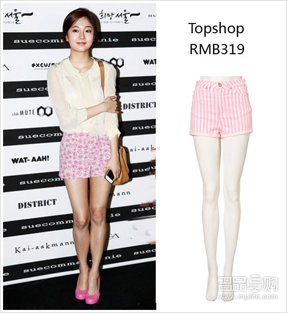 白色宽松衫+糖果色热裤,带有些许甜美,又不失大将之风。